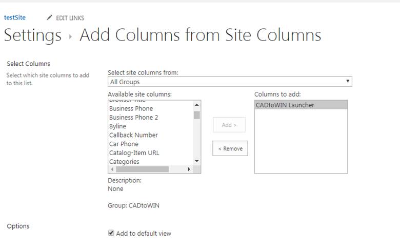 option” add the “CADtoWIN Launcher” column as shown in the next image