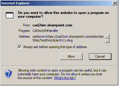 SharePoint version, there are 3 ways to configure the CADtoWIN launching